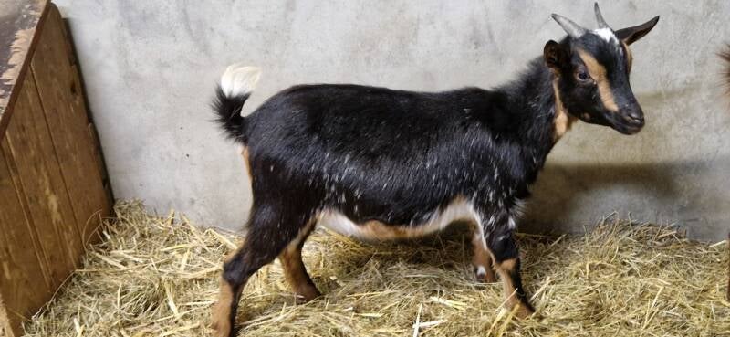 Alice V. Zwart witte hoornloze bok M. Maanvlek v Taran