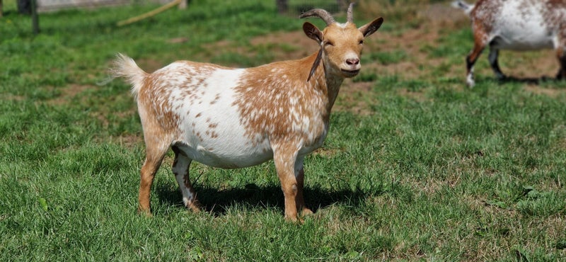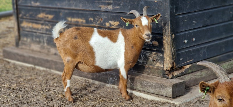 Nola is een camel bont geitje met een paar donkere maanvlekken.