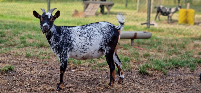 Feetje is een camel maanvlek geitje die al voor verschillende prachtige nakomelingen heeft gezorgd.